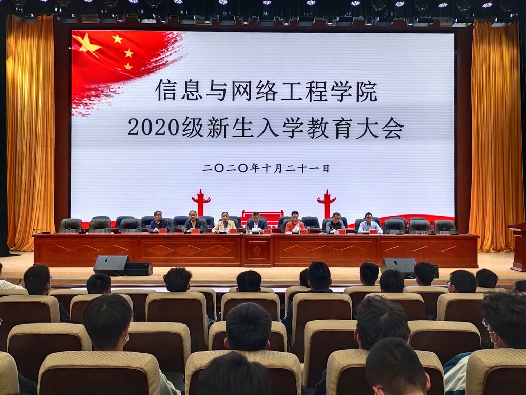 10月21日下午,信息与网络工程学院在龙湖校区东辅楼二楼学术报告厅隆重召开2020级新生入学教育大会。党总支书记王振其、副院长余宏杰、院长助理何恩节及各系室主任、2020级新生辅导员及415名新生参加会议。会议由副处级辅导员韦乃学主持。
