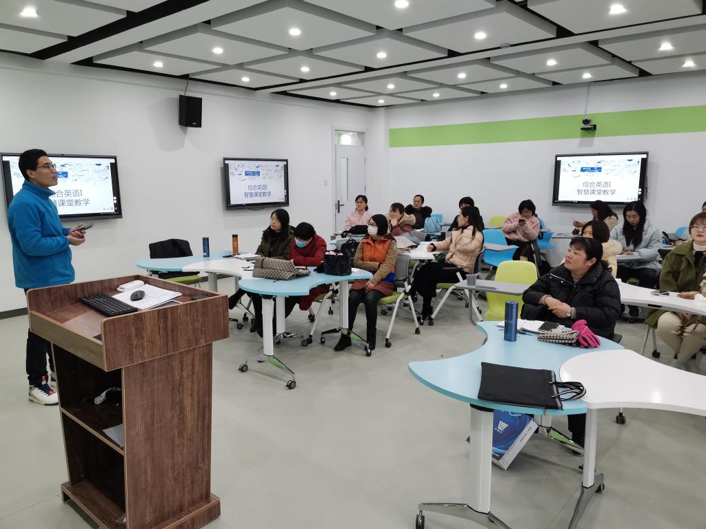 为促进现代教育技术在英语专业教学和大学英语教学中的应用与推广,提升英语教师的信息化教学素养,12月9日下午,外国语学院英语专业教研室和大学英语第二教研室结合“超星杯”智慧课堂教学竞赛,在凤阳校区求B305智慧教室联袂举行智慧课堂教学研讨活动。活动由英语教研室主任洪民主持,英语教研室副主任吴远青主讲,英语教研室和大学英语第二教研室全体教师参加。