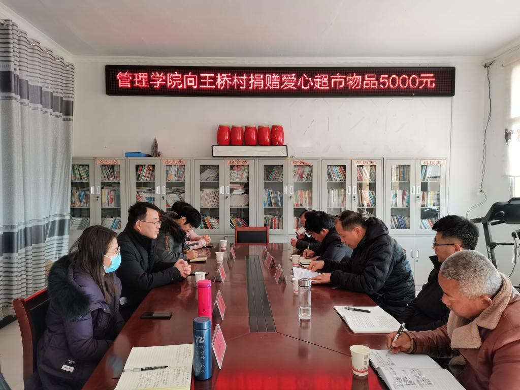 党课和座谈会结束后,管理学院为王桥村爱心超市捐赠价值达5000元物品。