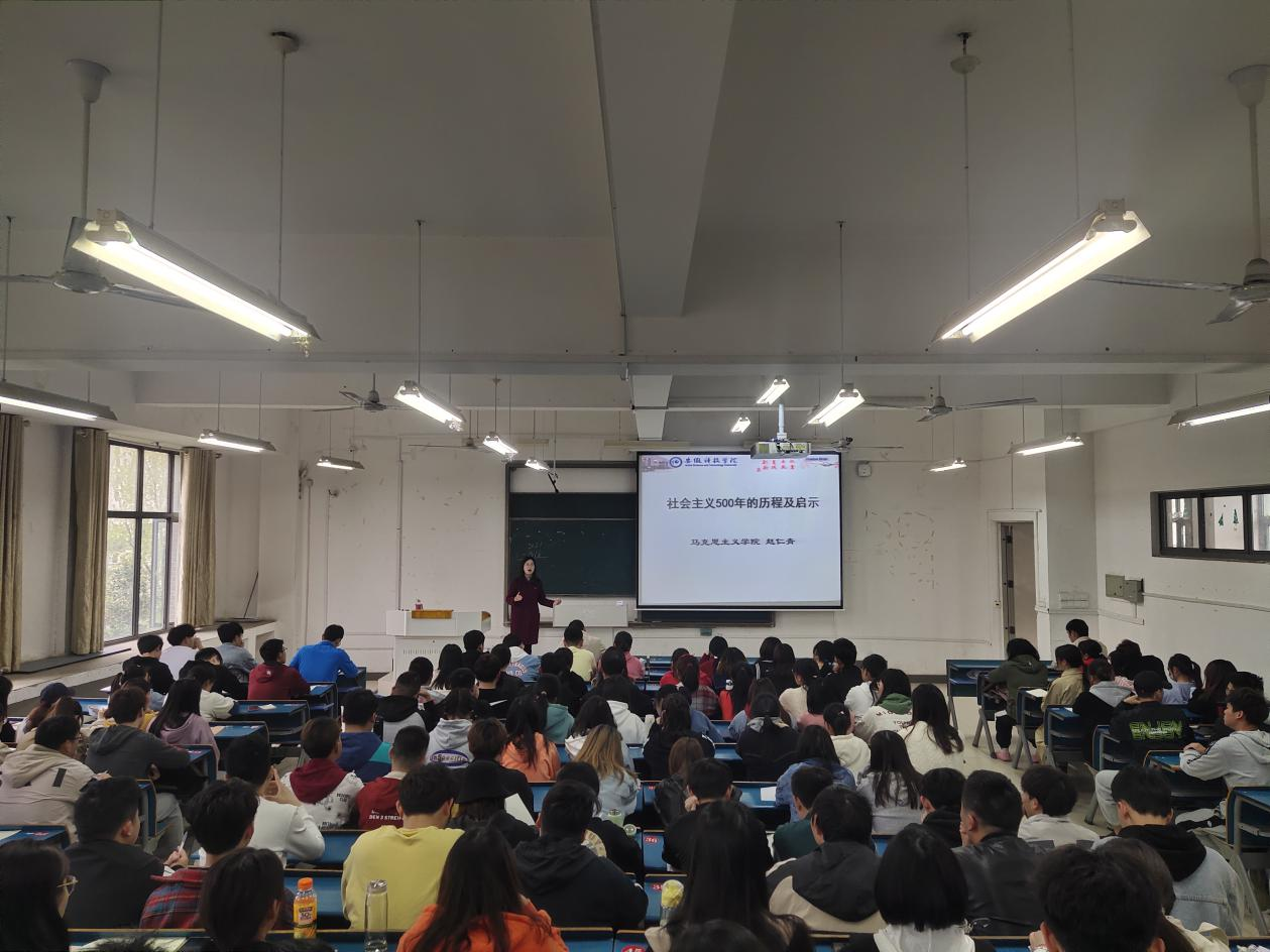 在近两个小时的报告中,赵仁青围绕“社会主义500年的历程及启示”主题,以500年来社会主义发展的历史脉络为叙述骨架,还原历史情境、再现历史人物故事,对社会主义从空想到科学、社会主义从理想到现实、社会主义从一国到多国、社会主义在中国焕发出强大生机活力四个历史发展阶段进行了全面系统、内涵丰富的解读。报告对于学生党员、入党积极分子更加深刻理解“马克思主义为什么行”、“中国共产党为什么能”、“中国特色社会主义为什么好”等重大历史命题,提供了很强的指导作用。