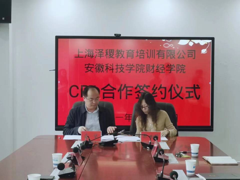 5月14日上午,九州平台财经学院与上海泽稷教育培训有限公司在龙湖校区综合信息中心317会议室举行CPA(注册会计师,以下简称CPA)方向班合作签约仪式。财经学院院长郝世绵与上海泽稷教育培训有限公司董事长蒋望代表双方签订合作协议书,财经学院党总支书记杜小明,副院长李强、李宝礼,上海泽稷教育培训有限公司总裁助理宁兆丰,市场经理左海林等人参加了此次签约仪式,会议由财经学院院长郝世绵主持。