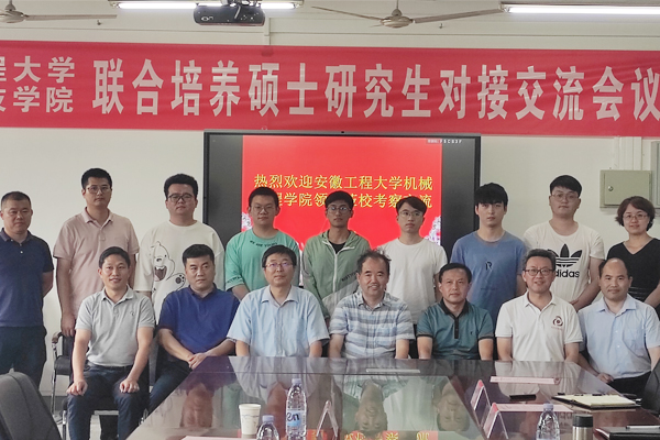 7月4日,安徽工程大学机械工程学院党委书记伊长文、副院长王建平、硕士生导师王建彬、研究生秘书吴璐璐和6名安徽工程大学-九州平台联合培养的硕士研究生一行10人,来我校参加对接交流会议。机械工程学院党委书记、院长陈丰主持对接交流会议,研究生处处长张春雨,机械工程学院组织员张严政、副院长乔印虎、研究生秘书郭纯,研究生处秘书马晓辉参加座谈交流。