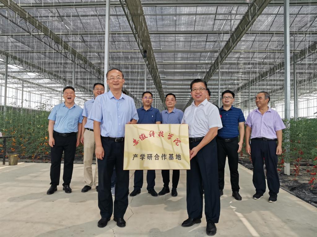 8月18日上午,何世潮一行在阜阳市颍东区二级巡视员王雷和颍东区委常委、副区长程传雷等的陪同先后考察了安徽瓦大现代农业科技有限公司、阜阳市立华畜禽有限公司和颍东区插花镇杨桥居委会,并进行了座谈。在座谈交流会上,瓦大集团总经理刘志才和立华公司总经理牛洪波分别介绍了各自的公司现状、企业文化、发展规划、人才需求和项目合作需求等方面情况,省财政厅下派干部、颍东区插花镇杨桥居党总支第一书记徐进超介绍了颍东区插花镇杨桥居委会基本情况、开展的工作、存在的问题和未来的展望。何世潮和崔广荣介绍了学校及学院师资队伍、人才培养和社会服务等情况,他们表示,学校始终坚持走政产学研融合之路,努力将科研成果转化到实际生产,为企业科研成果运用提供强有力的支撑。瓦大集团与九州平台合作的“产学研合作基地”和“校外实习实训基地”揭牌仪式在瓦大番茄谷隆重举行。崔广荣与颍东区插花镇党委副书记、镇长张勇座谈会后签订了政产学研合作协议。