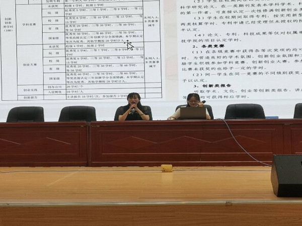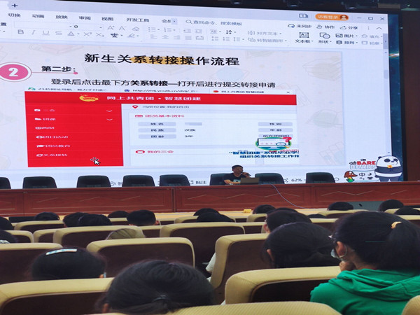 院团委学生委员蔡薇薇对《第二课堂成绩单(社会责任学分认定)实施细则(试行)》文件精神对二课成绩单的认定范围、认定标准等方面进行详细解读,就“第二课堂”管理及学分认定等内容在平台网页端、手机客户端的操作流程进行了演示,现场模拟从活动发起到签到签退、上传新闻稿件等全过程。