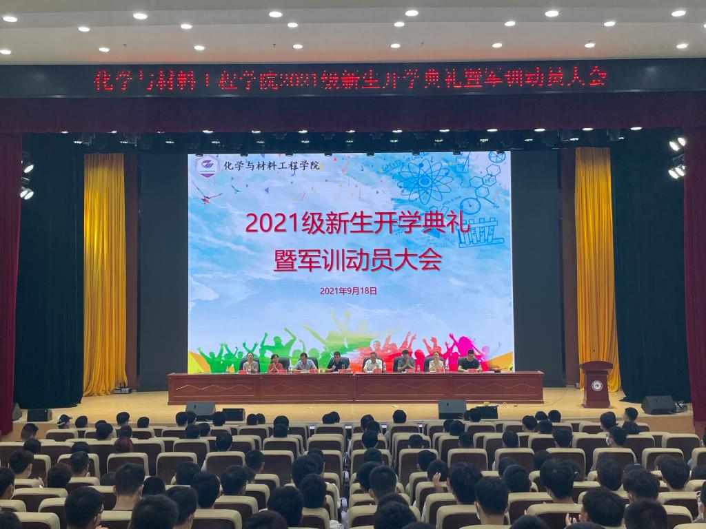 9月18日上午,化学与材料工程学院在蚌埠龙湖校区信息中心东附楼报告厅举行2021级新生开学典礼暨军训动员大会。学院党委书记黄树桥、院长宋常春、副院长李子荣、党委副书记张炎、副院长唐婧、学院分工会主席丁志杰、党政办主任许妮、校友代表汪伟、教师代表、老生代表、全体辅导员以及2021级全体新生出席大会。大会由黄树桥主持。
