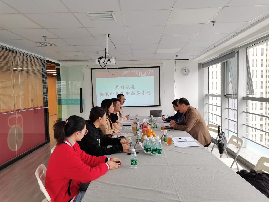 5日上午,丁景良一行来到贝尔科教集团安徽分公司,受到了京贝事业部副总经理徐大海、副总经理助理熊杰,安徽分公司总经理李晏欣、陈杨的热情接待。徐大海介绍了公司概况、主营业务和人才需求情况,表达了加强校企合作的强烈愿望。陈传万就学院人才培养方案和毕业生就业情况做了说明,详细了解了公司员工晋升渠道和发展方向。双方就校企合作框架内容进行了深入细致地探讨,初步达成了合作意向。
