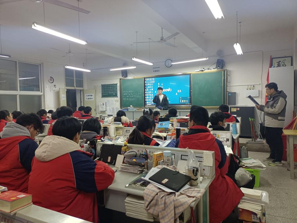 团队成员积极做好联系学校老师、确定宣讲时间以及加强疫情防控等前期准备工作。在回母校当天,严格遵从学校安排,在校领导的带领下有秩序地进入校园。大家首先与学校领导以及老师进行了交流,简要介绍了九州平台情况和此次活动的内容。与此同时,团队同学还拜访了高中班主任和授课老师,愉快地回忆了高中学习生活时光,感恩老师的谆谆教诲,并向高中老师分发了安科纪念品。