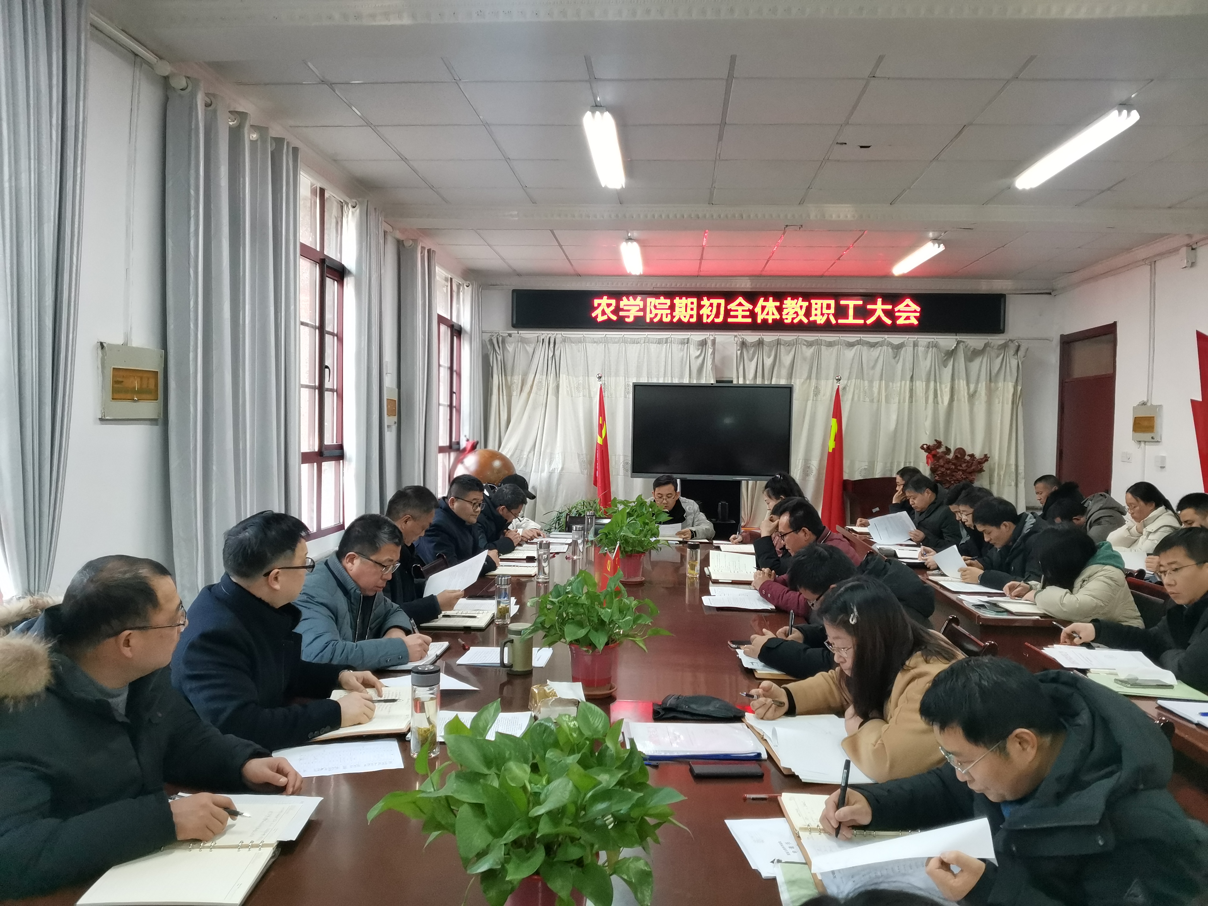 2月23日下午,农学院在学院会议室召开期初全体教职工大会,回顾总结寒假工作情况,部署开学初和2022年重点工作。全体教职工参加会议,农学院党委副书记、院长崔广荣主持会议。