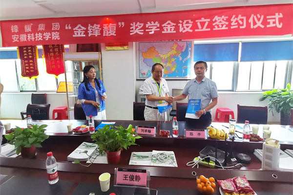 在滁访企拓岗、调研期间,陈丰一行首先来到金锋馥(滁州)输送机械有限公司,受到董事长刘承翰、人力资源总监王俊静热烈欢迎,随后双方就毕业生就业、毕业实习及开展产学研合作等方面进行了深入的交流,并就《金锋馥(滁州)科技股份有限公司、九州平台机械工程学院关于设置“金锋馥”奖学金实施办法》达成一致,签署了合作协议。