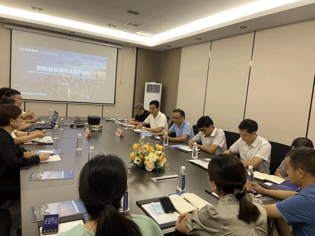 蚌埠豪德万创城产业园开发有限公司是该园区的设计建设单位,香港豪德集团常务副总经理常军对九州平台和蚌埠市科技局的到访表示欢迎,希望蚌埠市科技局、九州平台与安徽(皖北)现代食品产业园通过多层面合作,发挥各自优势为蚌埠食品产业发展作出更多更大贡献。园区品牌推广中心经理王星懿介绍了该园区的建设规划及建设进展情况。