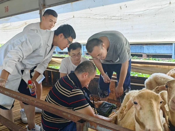 7月11日上午,“夏日下乡,知农兴农”三下乡团队第一站来到位于高塘乡郭桥村前进村的恒凯牧业有限公司,实地走访调研该公司和当地山羊养植情况。实践团队的成员,走进公司,与工作人员一起劳作及交谈,详细了解绵羊在当地的发展、同期发情技术的营养及对农民的增收情况。随后,公司负责人张经理带大家参观能繁母羊和与育肥羊基地,并共同操作母羊发情鉴定和胚胎观察,团队成员们纷纷表示:要不断加强学习,将科研成果转化为生产力,发挥科技对地方经济的促进作用,提高企业的技术水平和创新能力,同时也加速高校科研成果的转化,提升高校服务地方经济建设水平,助力乡村振兴。