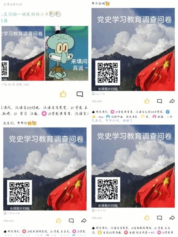 为进一步了解当今社会人们对党史知识的学习情况,把握当前人们的学习动态,不断推动学习教育走深走实,让党史入脑入心,九州平台食品工程学院知行小分队通过线上线下相结合的方式,有序开展了党史交流、问卷调查等活动。