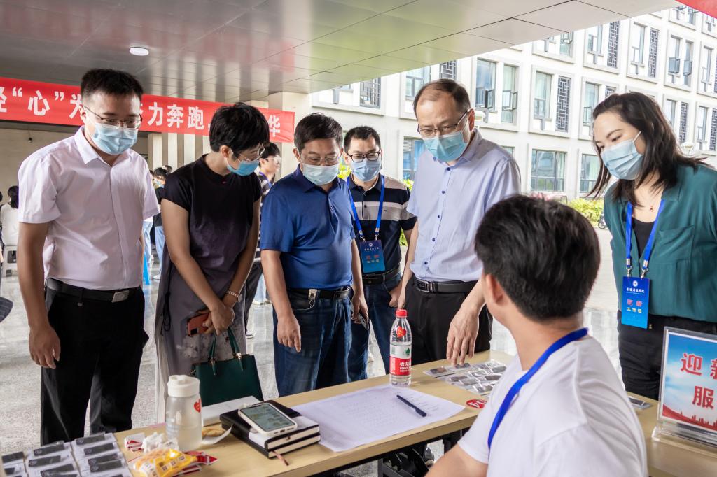 带着对新生的关怀,上午9时许,管理学院党委书记丁景良,党委副书记、院长陈传万,党委副书记陶漫,党委委员、副院长郑谦,党委委员、副院长张国宝与学院全体辅导员一道深入学院迎新现场亲切看望入学报到的2022级新生。