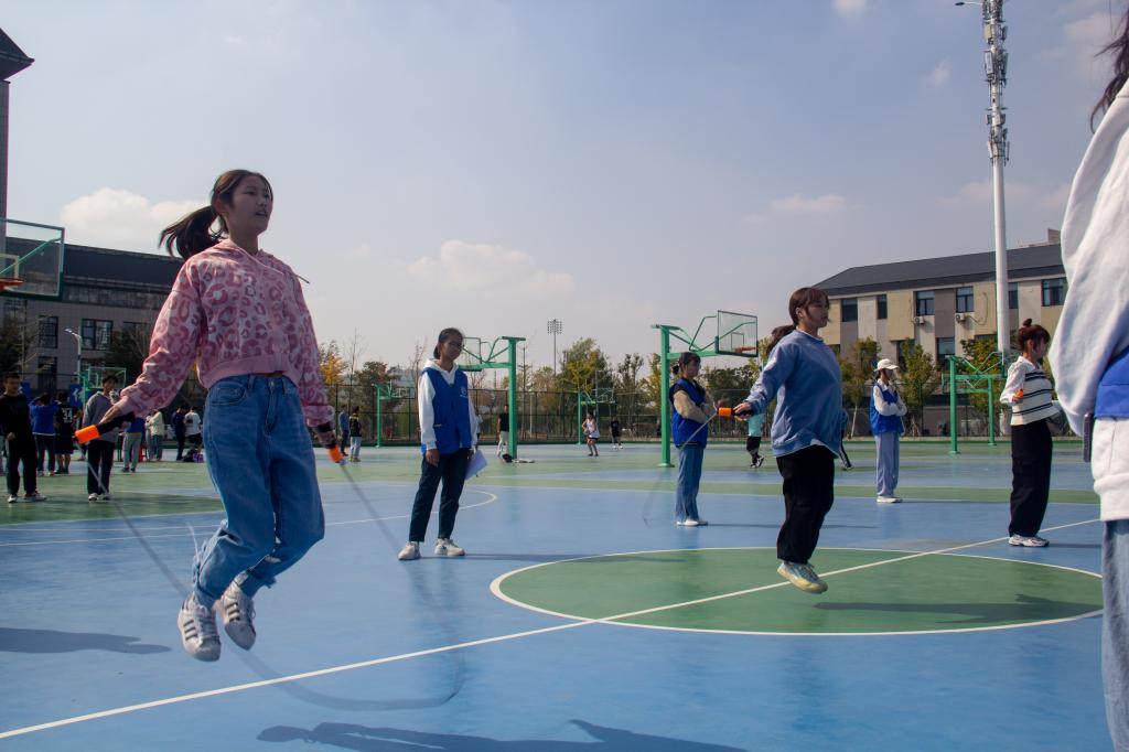 10月15日上午10点,趣味类项目也如期举办。趣味类项目分为:一分钟仰卧起坐、一分钟跳绳、排球对墙颠球、篮球三分投篮、足球90秒颠球、引体向上。比赛气氛激烈又不失轻松愉快,参赛同学们尽力完成每一项项目,全身心的投入在比赛中,围观同学不时发出欢快的笑语,同学们将青春的光芒发挥到极致,充分感受到友谊第一比赛第二的宗旨。