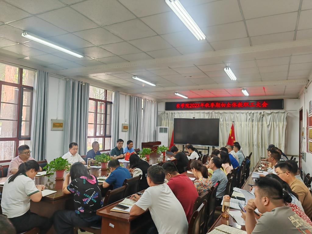 9月6日下午,农学院在学院会议室召开2023年秋季期初全体教职工大会,回顾总结暑假工作情况,部署学期初和2023年下半年重点工作。全体教职工参加会议,会议由农学院党委副书记、院长崔广荣主持。