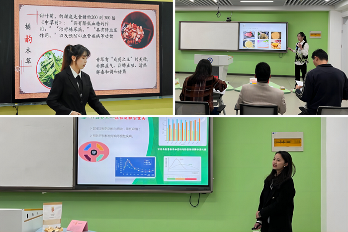 比赛现场,各团队派出一名代表进行现场展示,围绕本组产品的研发思路、制作方式、创新特点以及发展前景等方面进行细致讲解。评委老师根据作品情况分别从创新性、营养价值、风味口感等细节作为切入点,对各位参赛选手针对性提问,并利用专业知识和独到经验对产品的优化和调整提出了宝贵的建议。各位选手全神贯注,仔细聆听老师的教导以及意见建议,纷纷表示受益匪浅,并由衷地感谢各位评委的支持和帮助。参赛选手易思敏表示:“大赛现场气氛热烈,评委老师对我们的作品很肯定,也提出了很多建设性的建议,下一步我们会根据专家意见不断完善产品,争取越做越好!”