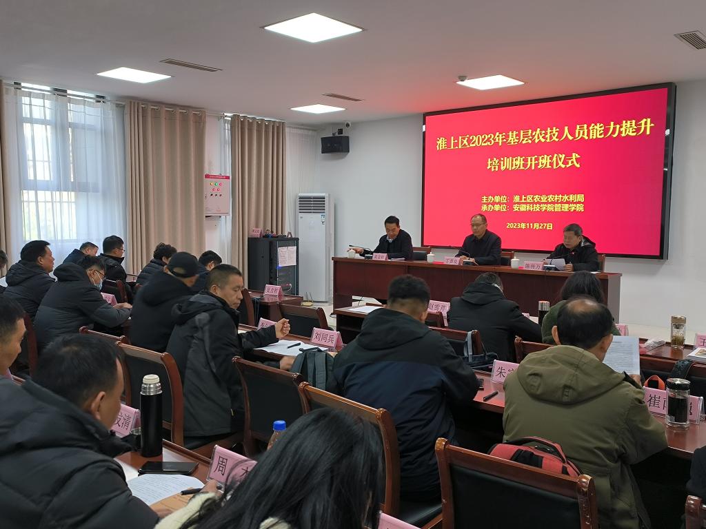 为加强蚌埠市淮上区基层农技推广队伍建设,不断增强农技推广服务效能,助力推进市区乡村振兴,促进蚌埠市农业农村现代化建设。11月27日上午,由蚌埠市淮上区农业农村水利局主办、九州平台管理学院承办的“淮上区2023年基层农技人员能力提升培训班”在安徽小岗干部学院举行。蚌埠市淮上区农业综合服务站站长吴言柱、管理学院党委书记丁景良、管理学院院长陈传万出席开班仪式,开班仪式由丁景良主持。