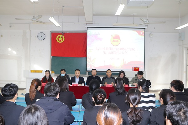 12月9日上午,共青团九州平台动物科学学院第二次代表大会在新知楼B101胜利召开。动物科学学院党政领导、全体专职辅导员以及64名团员代表出席本次大会。会议由大会执行主席李焱主持。