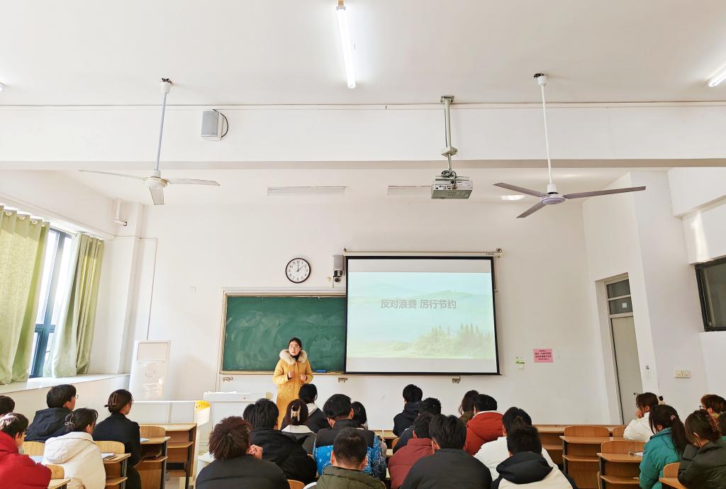 12月27日,学院组织各班级主要班委召开“厉行节俭 反对浪费”专项行动动员会。团委书记薛璐莎全面介绍了学校关于“厉行节约坚持过紧日子”相关文件内容,要求各班级班委,一是要做“厉行节约、反对浪费”观念的倡导者,要带头自觉成为班级活动的宣传者、实践者和监督者,以良好的作风引领校园新风尚;二是要做“厉行节约、反对浪费”行动的实践者,要自觉践行“光盘行动”,培育“舌尖上的美德”,杜绝“舌尖上的浪费”,形成文明健康、绿色环保的社会新风尚;三是要做“厉行节约、反对浪费”美德的传承者,树立浪费可耻、节约为荣的观念,传承中华民族美好品德。