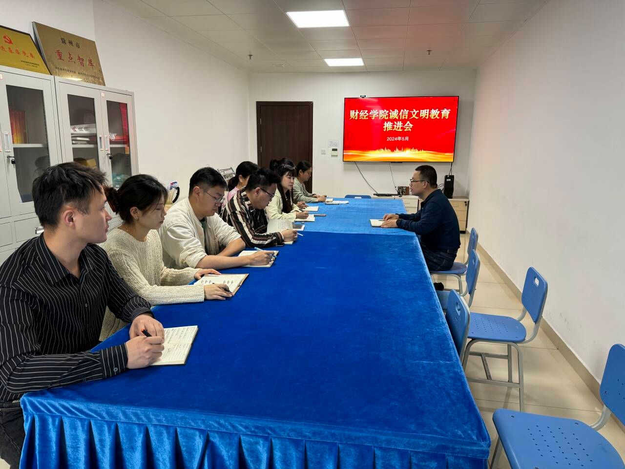 为落实立德树人根本任务,深化中华民族诚信美德,营造实事求是、诚信考试氛围,5月13日下午,财经学院召开诚信文明教育工作推进会。学院党委副书记、纪委书记耿广汉主持,全体辅导员参会。