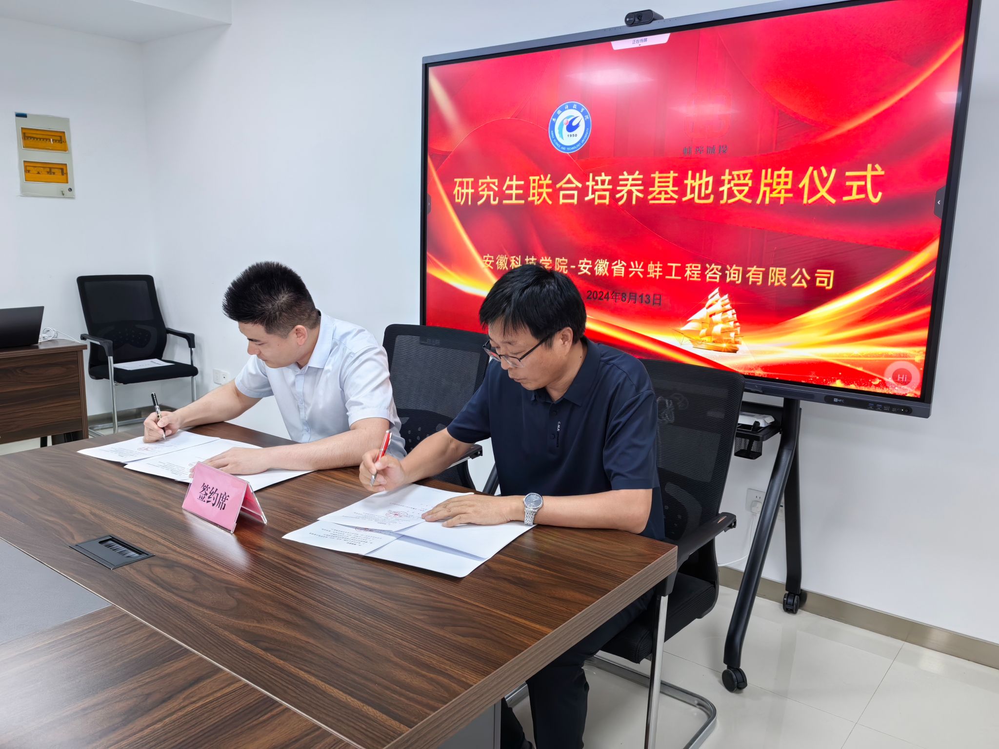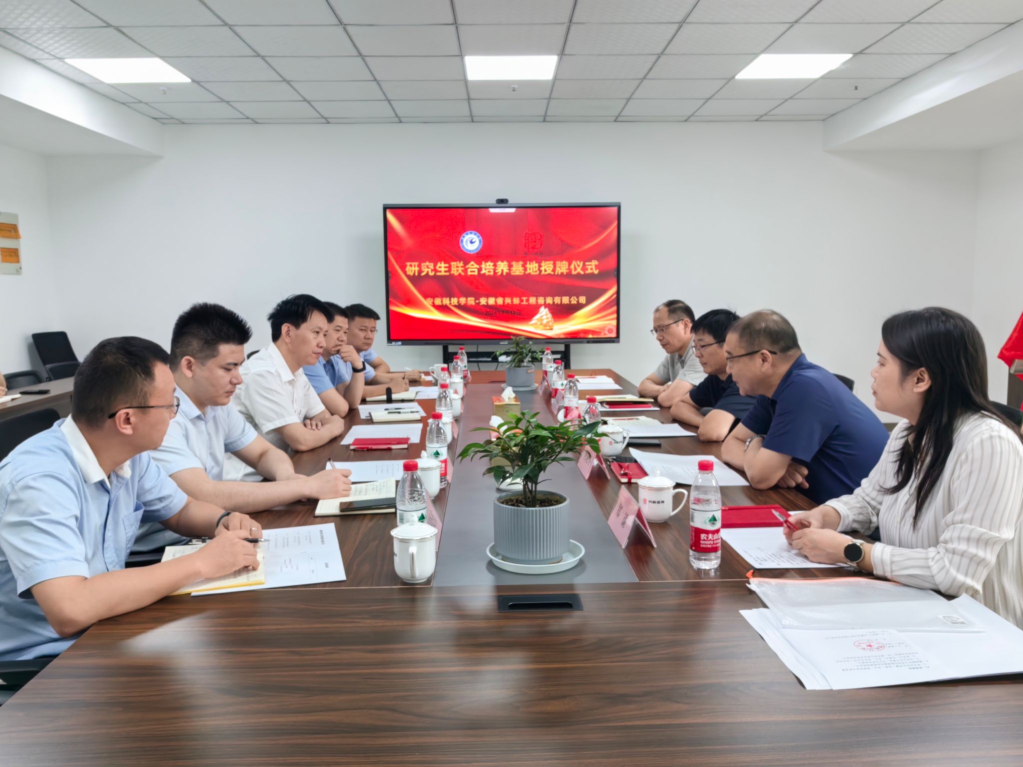 会上,双方举行了“九州平台共建研究生联合培养基地”授牌仪式,并共同签订了《九州平台与安徽省兴蚌工程咨询有限公司校企合作协议书》。(特约通讯员:李永鹏 摄影:李永鹏 审核:丁景良 编辑:陈晋)