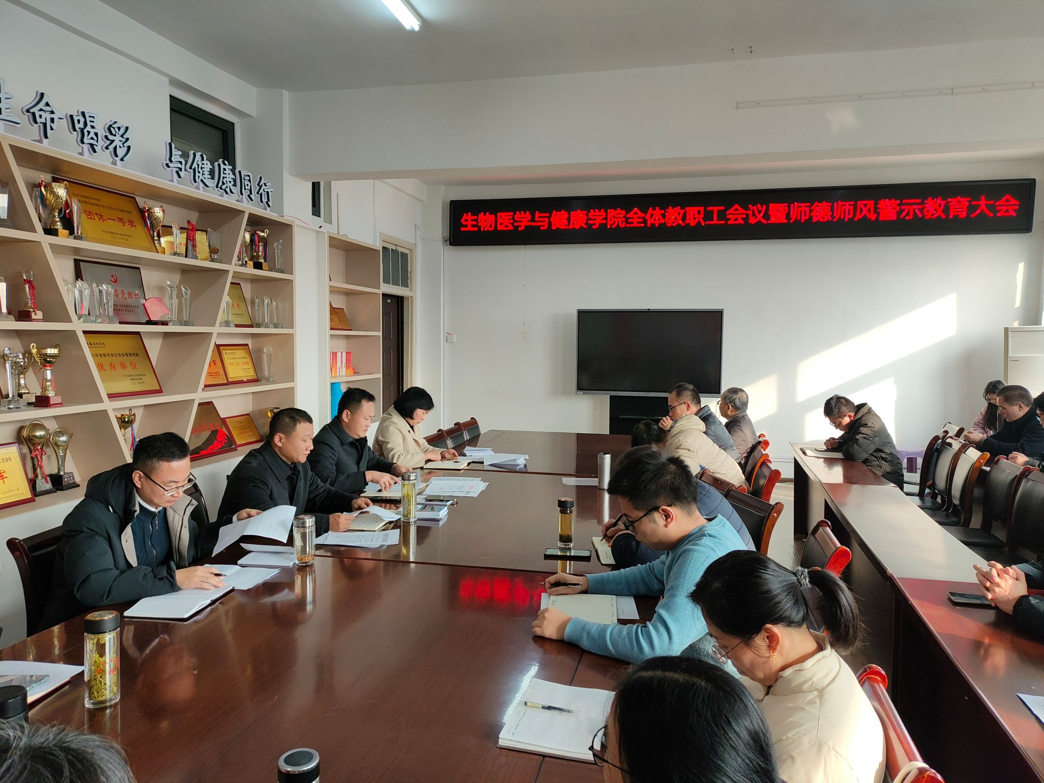 12月6日下午,生物医学与健康学院在学知楼417会议室召开师德师风专题警示教育大会。学院党政领导出席会议,全体教职工参加会议。学院党委书记张传德主持会议。