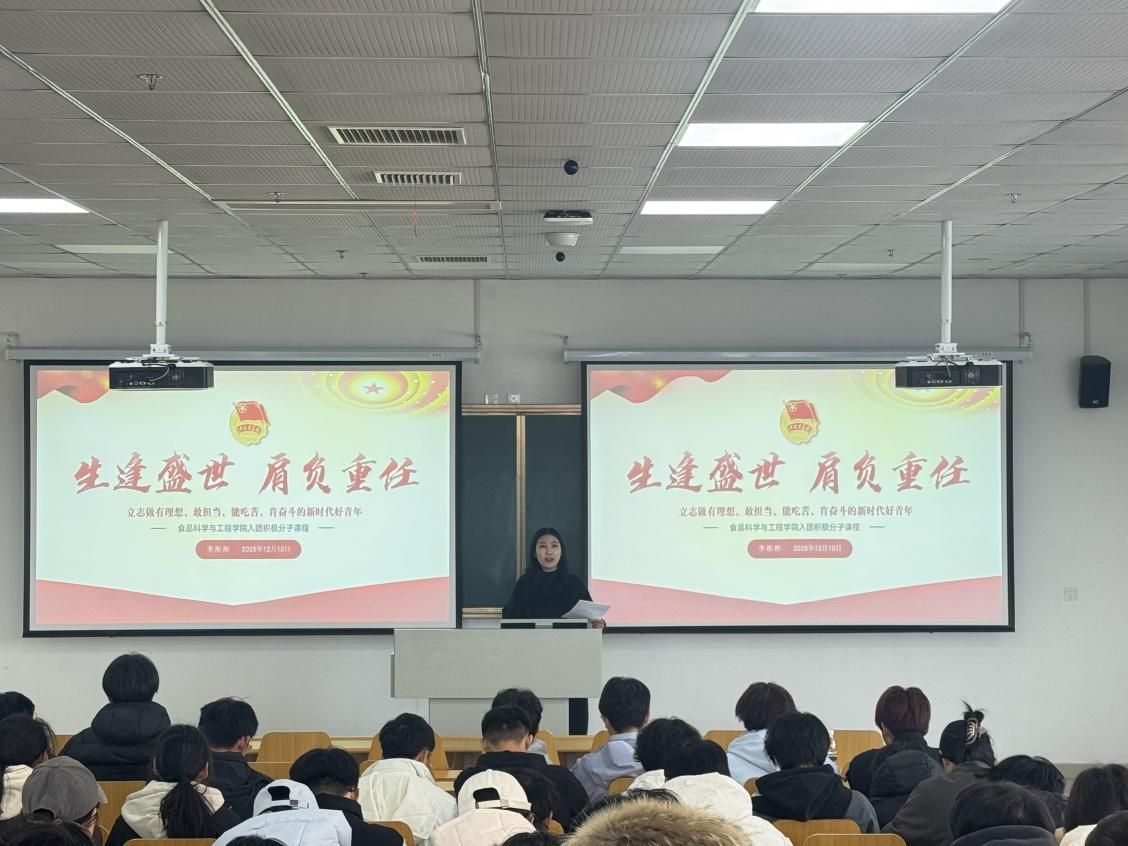 为进一步加强团员队伍建设,提升入团积极分子的思想觉悟与政治素养,12月10日,食品科学与工程学院在学院楼101教室开展入团积极分子专题培训第三讲。本次培训由学院专职辅导员李彤彤担任主讲,全体入团积极分子参与。