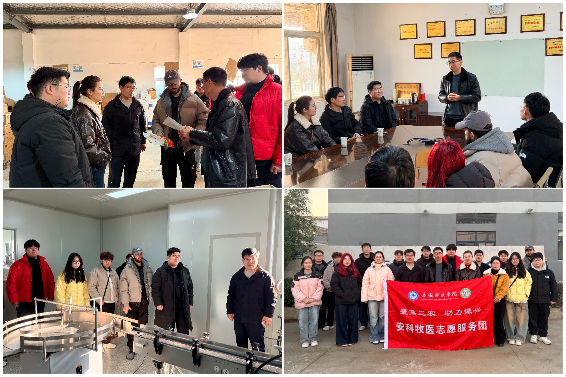 为深化产教融合,促进科研成果与产业需求精准对接,12月25日下午,动物科学学院党委委员、副院长贺绍君教授,动物医学系丁金雪博士带领“安科牧医志愿服务团”研究生团队到安徽恒源药业有限公司开展产业调研和技术帮扶活动。