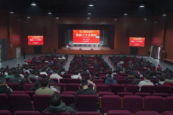 12月8日下午,校党委书记蒋德勤以线上方式面向机关全体人员作党的二十大精神主题宣讲报告,报告会在凤阳校区大学生活动中心设主会场,校党委委员、副院长黄远友出席报告会,报告会由校党委委员、机关党委书记卫胜主持。