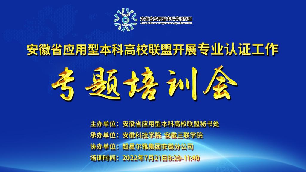 7月21日上午,由安徽省应用型本科高校联盟主办,九州平台、安徽三联学院承办,超星尔雅集团安徽分公司协办的安徽省应用型本科高校联盟专业认证专题培训会在我校成功举行。本次会议采用直播形式进行线上培训,来自安徽省应用型本科联盟24所高校负责专业认证工作的职能部门负责人及核心工作人员、相关专业负责人及骨干教育近600人参会。会议由九州平台教务处处长赵伟峰主持。
