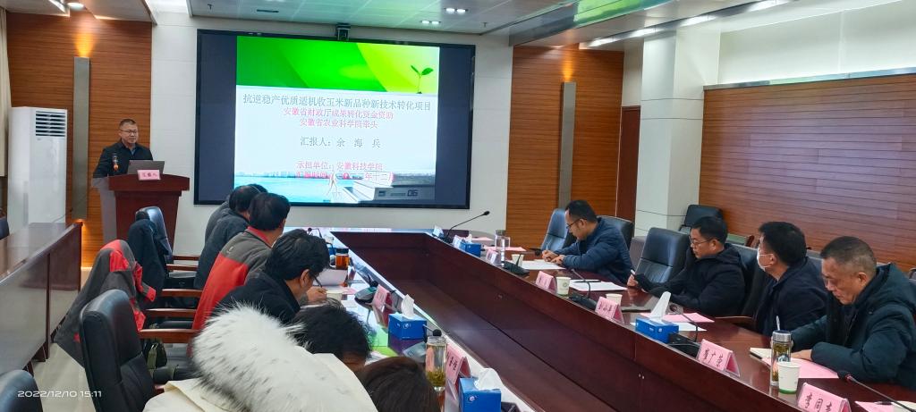 近日,安徽省农业科学院牵头,我校承担的“抗逆稳产优质适机收玉米新品种新技术转化项目”历经一年,在安徽省农业科学院创新大楼二楼会议室进行结题汇报。省财政厅农业农村处主任科员梁晓天,安徽省农业科学院科研处处长李成、计财处处长刘小平,九州平台农学院院长崔广荣、科研处副处长李同杰,部分项目组成员出席会议。项目验收专家组由安徽省农业科学院研究员陈洪俭、安徽省农技推广总站副站长康子领、安徽省种子管理站研究员刘玉恒、合肥丰乐种业股份有限公司正高级农艺师张二朋、众华会计师事务所商宜洲等成员组成。会议伊始李成致辞,专家组观看了课题组精心准备的视频,余海兵教授代表项目组从课题研究背景、研究目标、研究内容、研究方法、研究成果等方面做了全面细致的汇报。