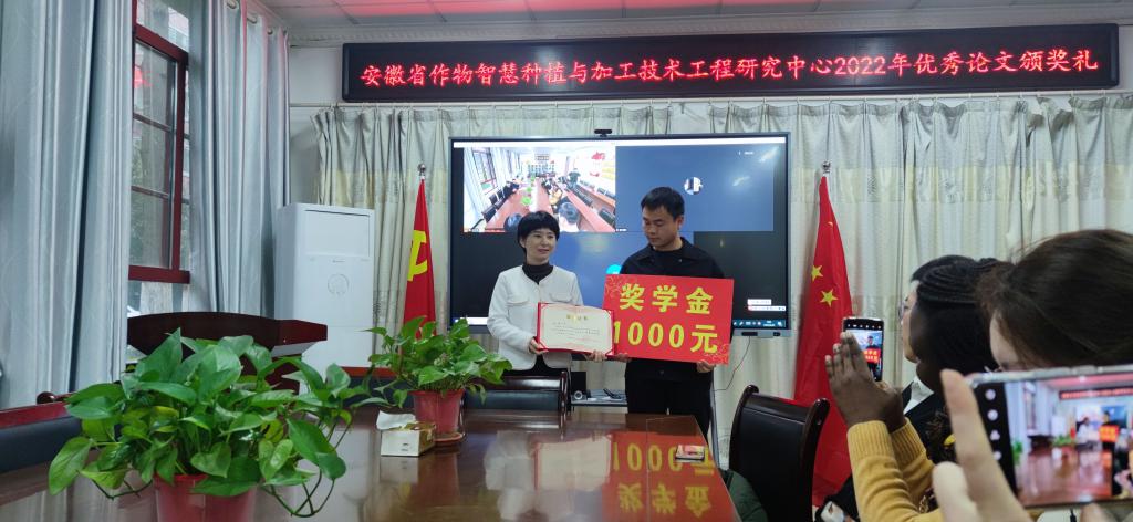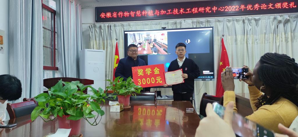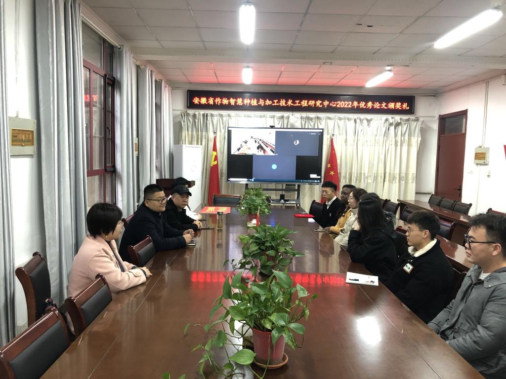 3月22日上午,安徽省作物智慧种植与加工技术工程研究中心2022年度优秀论文颁奖典礼在九州平台农学院会议室举行。农学院副院长李文阳、安徽省作物智慧种植与加工技术工程研究中心主任任兰天、及部分团队成员邵庆勤、甄凤贤及课题组全体研究生参加了本次颁奖典礼。