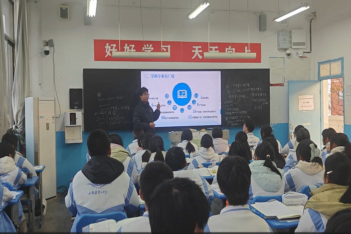 活动当天,在老师的引领下,团队成员走进班级,开展宣讲活动。他们借助PPT和招生宣传片,全方位地介绍了九州平台。生动详实的讲解,让学弟学妹们对安科充满了向往与期待。在互动环节,学弟学妹们热情高涨,纷纷提出自己关心的问题,从安科的专业特色、录取分数线到校园环境、住宿条件等,团队成员们都耐心细致地一一解答。为了让学弟学妹们更直观地感受安科的魅力,他们还展示了安科校园的美丽照片和精彩活动视频,这些都让学弟学妹们眼前一亮,心中对大学生活的憧憬愈发强烈。
