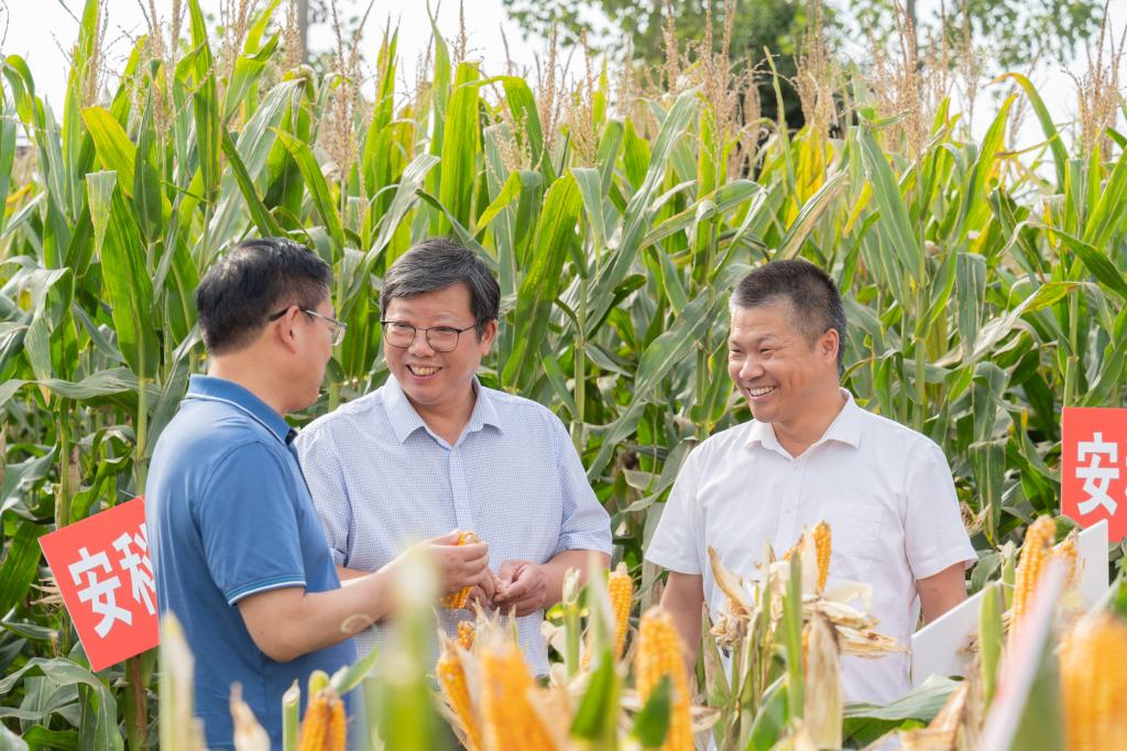 观摩会期间,参会人员在基地进行玉米新品种新技术观摩交流,参会领导、专家、相关企业及种植大户代表对我校选育玉米新品种及其配套栽培新技术给予高度评价。