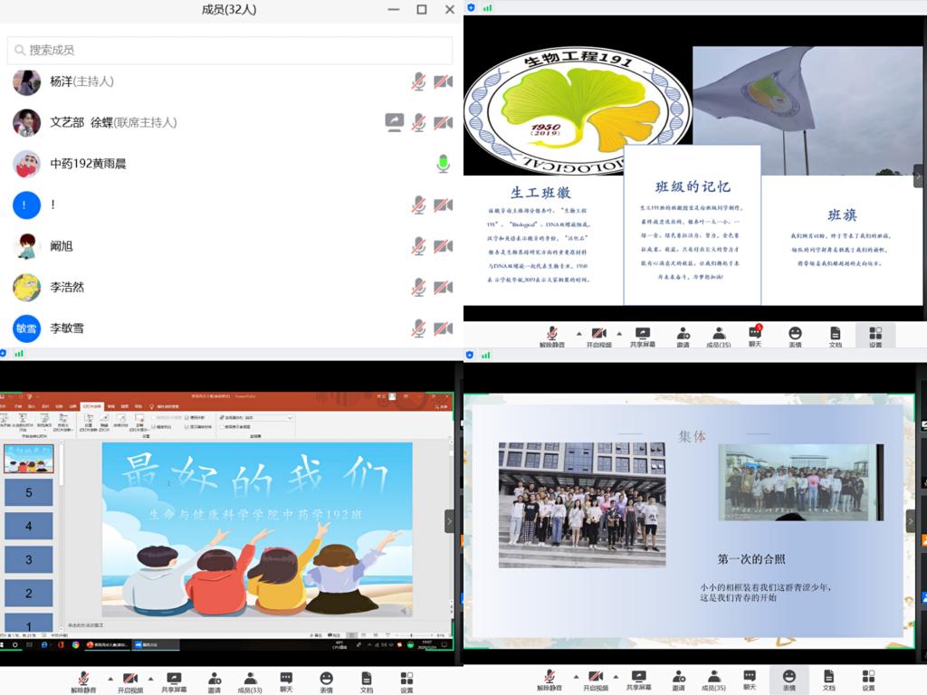 为加强学院各班级班团组织建设,增强凝聚力,营造优良学风班风,为学生的成长成才提供良好的平台,生命与健康科学学院举办以“颂青春活力,展班级风采”为主题的第三届班级风采大赛。本次比赛分为初赛和决赛,初赛于5月24日采用腾讯会议APP进行,决赛于5月30日至5月31日在腾讯QQ平台进行。部分二级学院学生代表担任本次比赛的评委,19级各班级参加本次比赛。