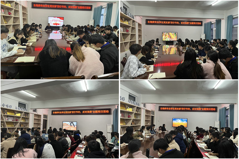 为大力弘扬勤俭节约传统美德,创建绿色文明校园,11月27日,生物类专业学生党支部举办“厉行节约,反对浪费”主题党日活动。