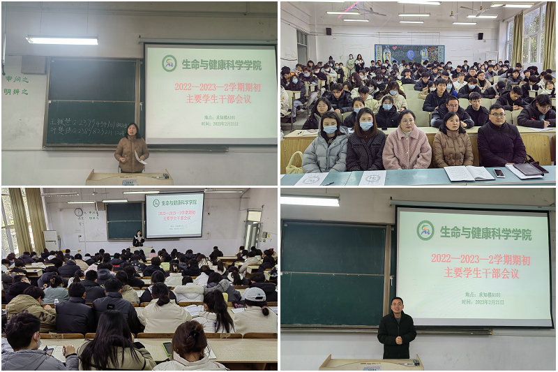姜毅就期初团学工作进行了布置,她强调要做好疫情防控工作,期末考试和考风考纪工作,落实好上课前各项准备工作,多途径、多渠道了解学生思想动态,组织召开寒假社会实践交流会,加强学生各类安全教育,做好考研学生复试和调剂服务工作,做好毕业生实习就业、征兵入伍以及毕业资格梳理等工作。其他各辅导员就各自负责工作进行了补充。学生会主席团成员卢玉青宣读《生命与健康科学学院诚信考试倡议书》。
