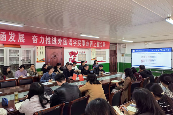 他强调,外国语学院全体教师要将践行教育家精神转化为思想自觉和行动自觉,融入日常教育教学中。要加强调研,把握教育和人才培养规律,认真修定人才培养方案;要深化课程教学改革,提升课堂授课学术性和艺术性,谋划数字化转型,积极开发数字化课程,不断提升教学效果。