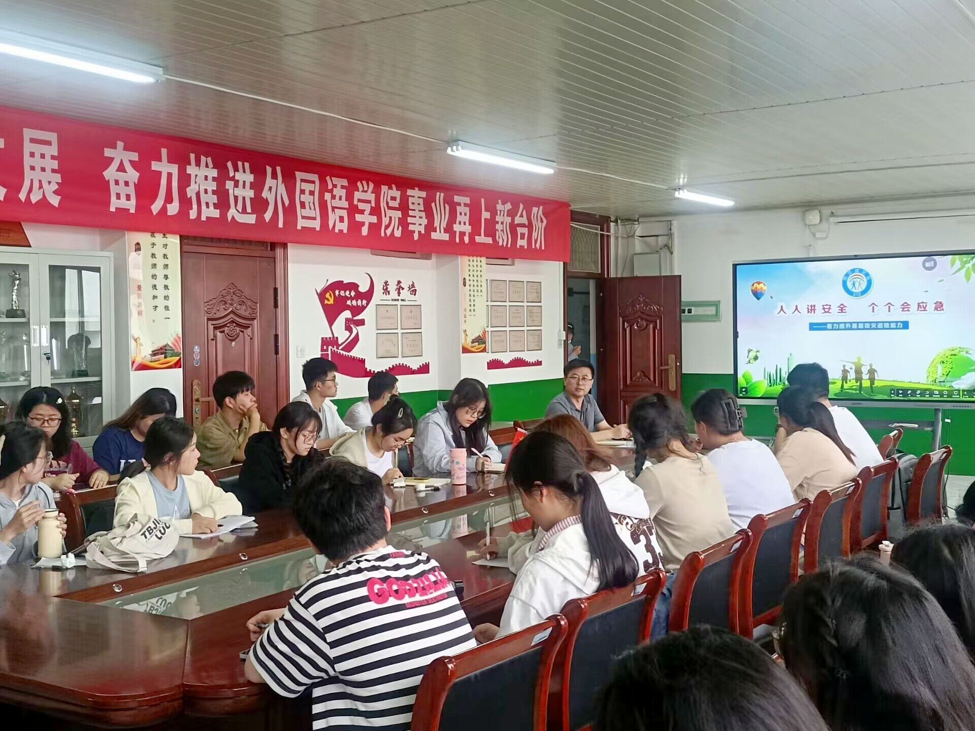 为进一步加强大学生防灾减灾意识,提升大学生自我保护能力,切实维护大学生的生命安全,5月11日下午,外国语学院在学院会议室举办了大学生防灾减灾知识讲座。讲座由学院党委副书记张海亮主讲,全体辅导员、各班班长、团支书、学委、心理委员、安全委员共同听取讲座。