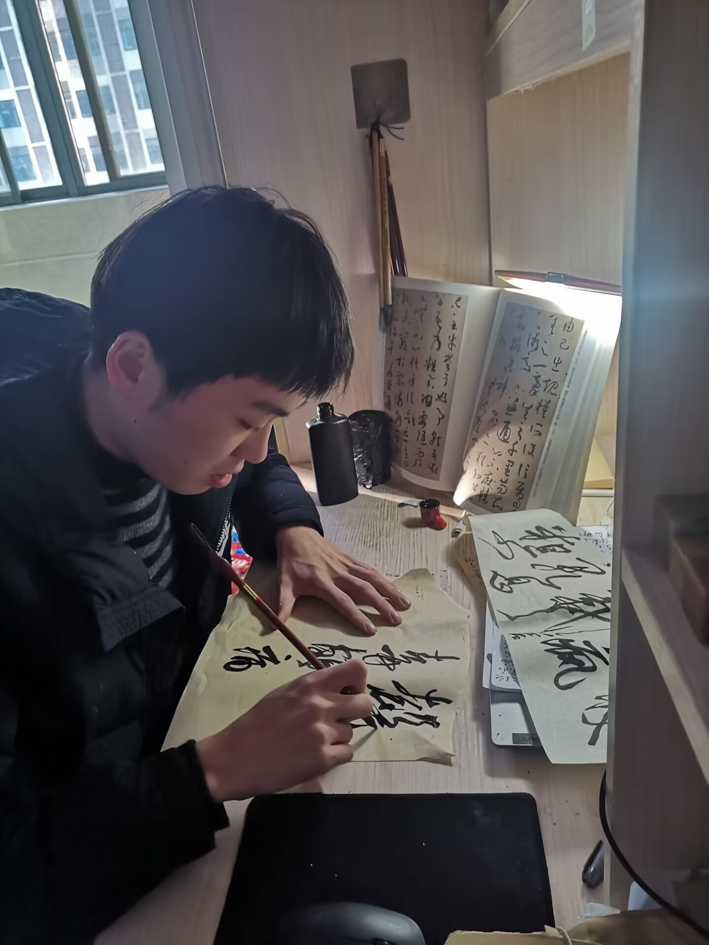 陶乐乐对学习充满热情,善于钻研,乐于将所学的知识融汇贯通并总结出一套自己的学习体系来丰富自己的学识境界。他具有丰富的想象力和创造力,在团队设计专利“数字化供水业务服务平台”的过程中,他提出了用“高斯曲线模型”和“数学方位视角”来解决其中一项有关客户体验感提升方法的问题。他曾以个人名义参加了“第二届安徽省大学生品牌创意设计大赛”A类赛事,并取得了省一等奖。他还十分痴迷于书法艺术,尤爱晋唐时期的潇洒书风。在任职“九州平台书美协会副会长”期间,他举办了书法知识竞赛、书法创作分享大会、书法艺术展等多项活动,除此之外,他还计划申请加入中国书法协会。
