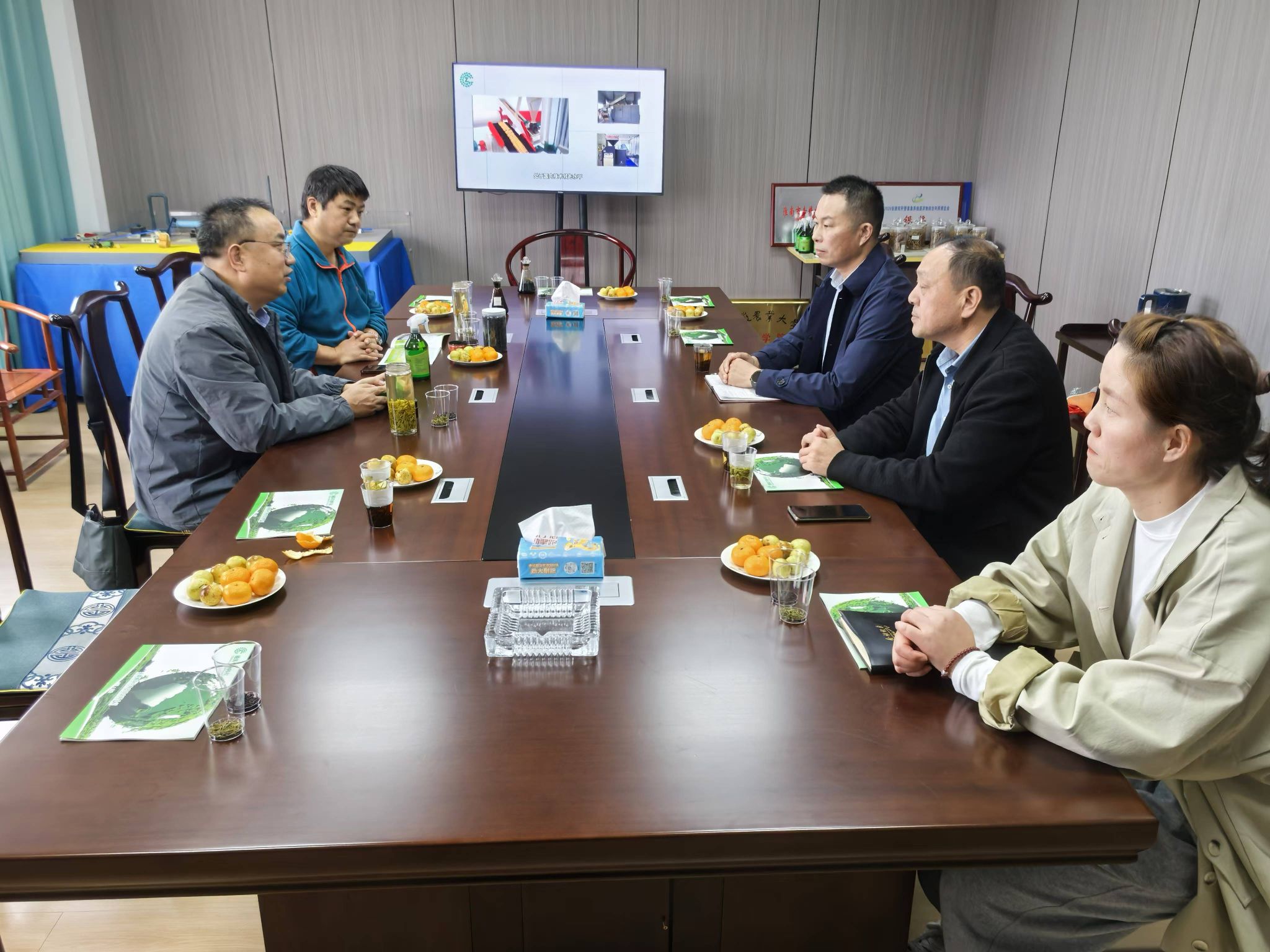 随后,校企双方召开了座谈会。李孝良代表学院介绍了学院的科研成果及其转化情况,并详细讲解了最新的秸秆利用技术和设备应用,分享了相关案例分析和实践经验。汪建飞教授则就企业关注的有机肥生产及相关技术难题进行了深入交流,分享了成功案例,提供了切实可行的解决方案。