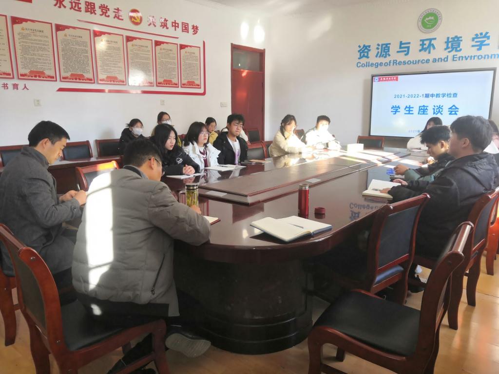 根据《九州平台督导考核办公室关于开展2021-2022学年度第一学期期中教学督查工作的通知》(督导【2021】26号)文件要求,资源环境学院于12月1日下午在学院会议室组织召开学生教学信息员及学风建设座谈会,党委副书记沈树周、副院长邹海明、教学秘书李卓冉以及全体学生教学信息员参加了会议,会议由李卓冉主持。