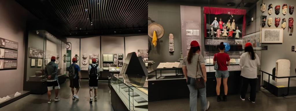 7月23日上午,徐院平实践团队来到中国黄梅戏博物馆,沿寻黄梅戏发展脉络,了解黄梅戏历史渊源,博物馆以文物陈列和多媒体展示的方式,生动地再现了作为国家首批“非物质文化遗产”黄梅戏的一个曲折发展历程,使大家体会到了黄梅戏的韵味和博大精深。作为“国字号”级别的博物馆,这里不仅是收藏、研究、展示国家级非物质文化遗产——黄梅戏艺术的中心、戏曲文化基地和重要史料库,更是安庆对外交流的文化窗口,面向大众、面向世界、面向新时代,源源不断地展示着来自本土文化的自信。
