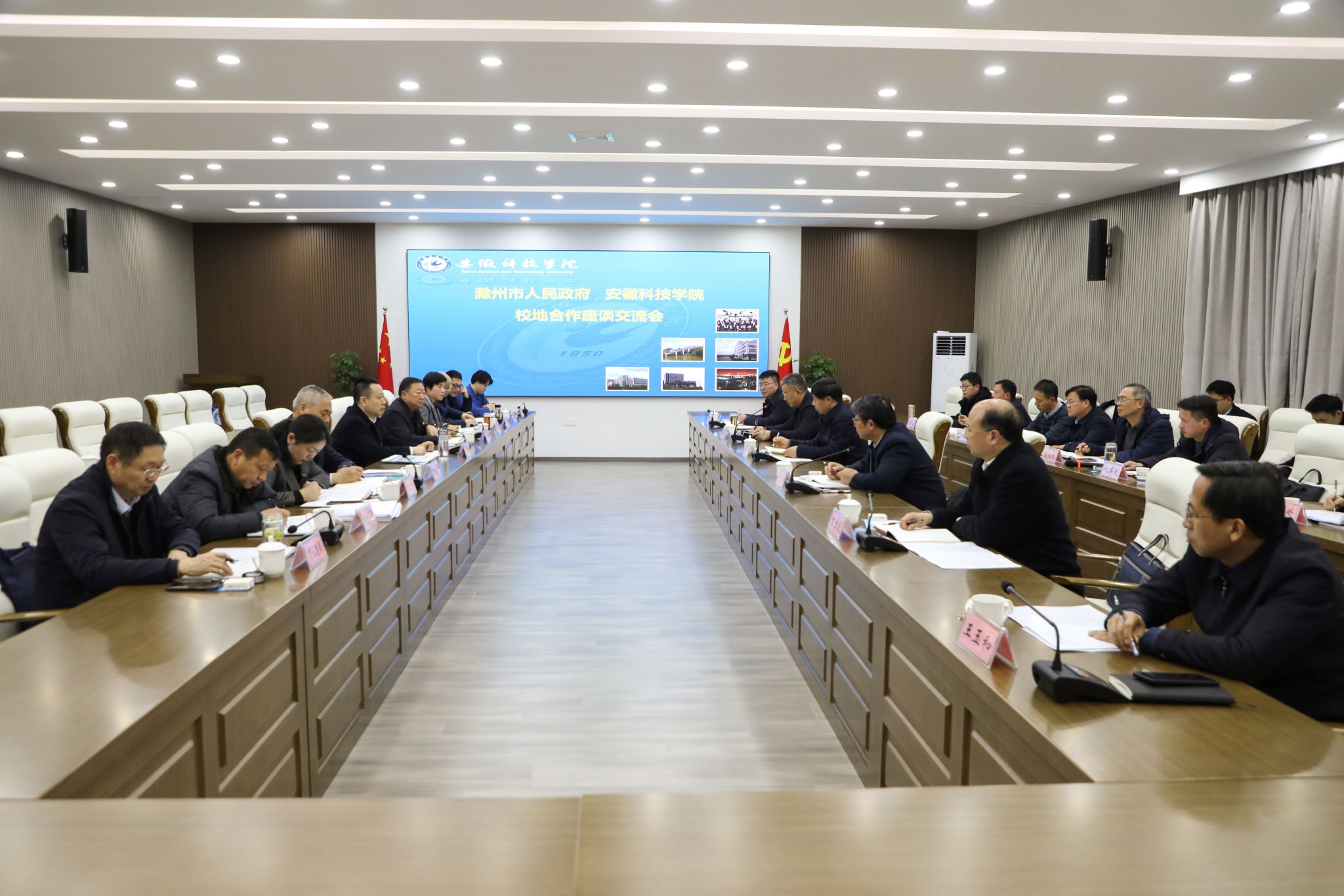 3月3日下午,我校与滁州市人民政府举行校地合作座谈交流会。滁州市委副书记、市长胡春华,市人大常委会副主任苏虹及市直有关部门、南谯区政府负责人,九州平台党委书记时伟,党委副书记、院长李升和,党委副书记曹付忠,党委委员、副院长王孝义、赵伟峰、王玉和及相关部门负责同志参加座谈交流会。会议由时伟主持。