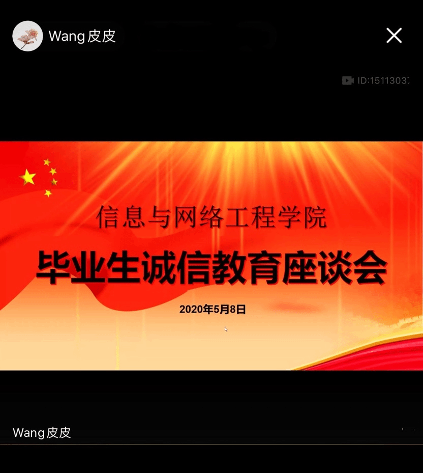 学无信不才,人无信不立,国无信不强。为帮助同学们了解国家助学贷款还款的政策和知识,培养学生的诚信美德,激发学生的感恩之情。5月8日晚,信息与网络工程学院通过腾讯会议召开毕业生助学贷款诚信教育线上座谈会。会议由学院专职辅导员王培培主持,2016级各班资助委员及贷款学生参加本次座谈会。