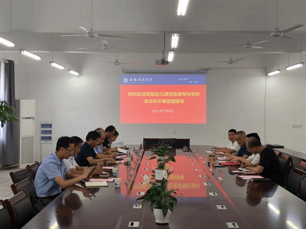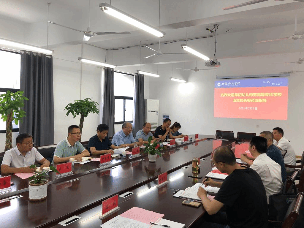 7月9日上午,阜阳幼儿师范高等专科学校党委副书记、校长汤志率党委委员,副校长陈绪龙及健康与管理学院负责人严岳峰、副院长王兴宏,大数据专业教师朱琪、王进、王芮,办公室主任王小宝等人莅临信息与网络工程学院考察交流学科专业建设。院党委书记王振其,党委副书记、院长余宏杰,计算机工程实训中心主任沈峰,计算机系副主任仇海全,专职辅导员陈凯热情接待了汤志一行。