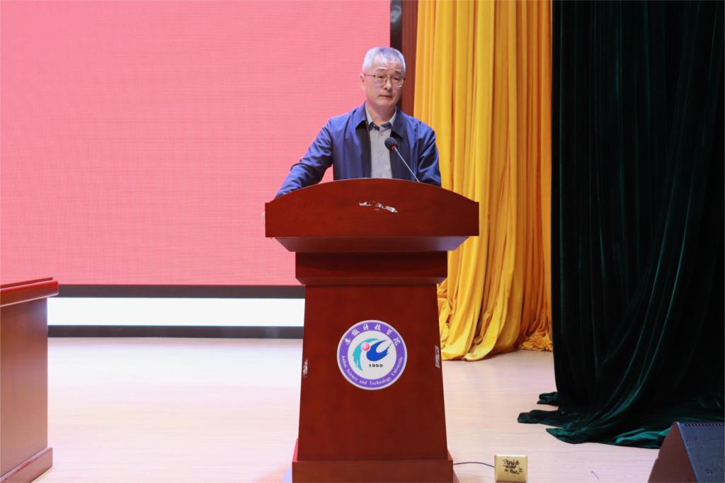 王振其做入学教育动员讲话,他对全体23级新同学的到来表示欢迎。同时代表学院对学生们提出四个方面的要求:一是树立远大理想,追求更高价值;二是端正专业思想,追求核心能力;三是适应成长规律,实现全面发展;四是强化安全观念,实现顺利成才。王振其强调,大学不是学习的终点,而是人生的加油站,专业没有好坏之分,应当注重能力发展。并希望同学们能够按照学院的要求,老师的希望和父母的期盼,做好人生职业规划,主动适应新环境,顺利开启大学生活新篇章。