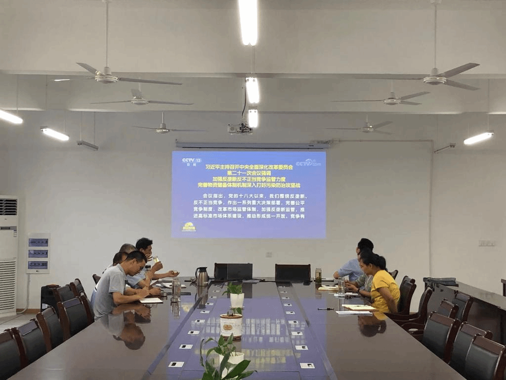 会上,全体中心组成员认真收看学习了《习近平在河北承德考察时的重要讲话精神》和《习近平在中央全面深化改革委员会第二十一次会议上的重要讲话精神》的新闻视频。参会人员围绕习近平总书记重要讲话精神,深刻学习领会了贯彻新发展理念弘扬塞罕坝精神的重大意义;深刻学习领会了加强反垄断反不正当竞争监管力度,完善物资储备体制机制,深入打好污染防治攻坚战的信心决心。