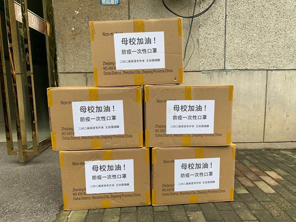 近日,我校2002届专升本英语专业校友王自强通过邮寄的方式为母校捐赠10000只医用口罩,助力学校新冠肺炎疫情防控工作。