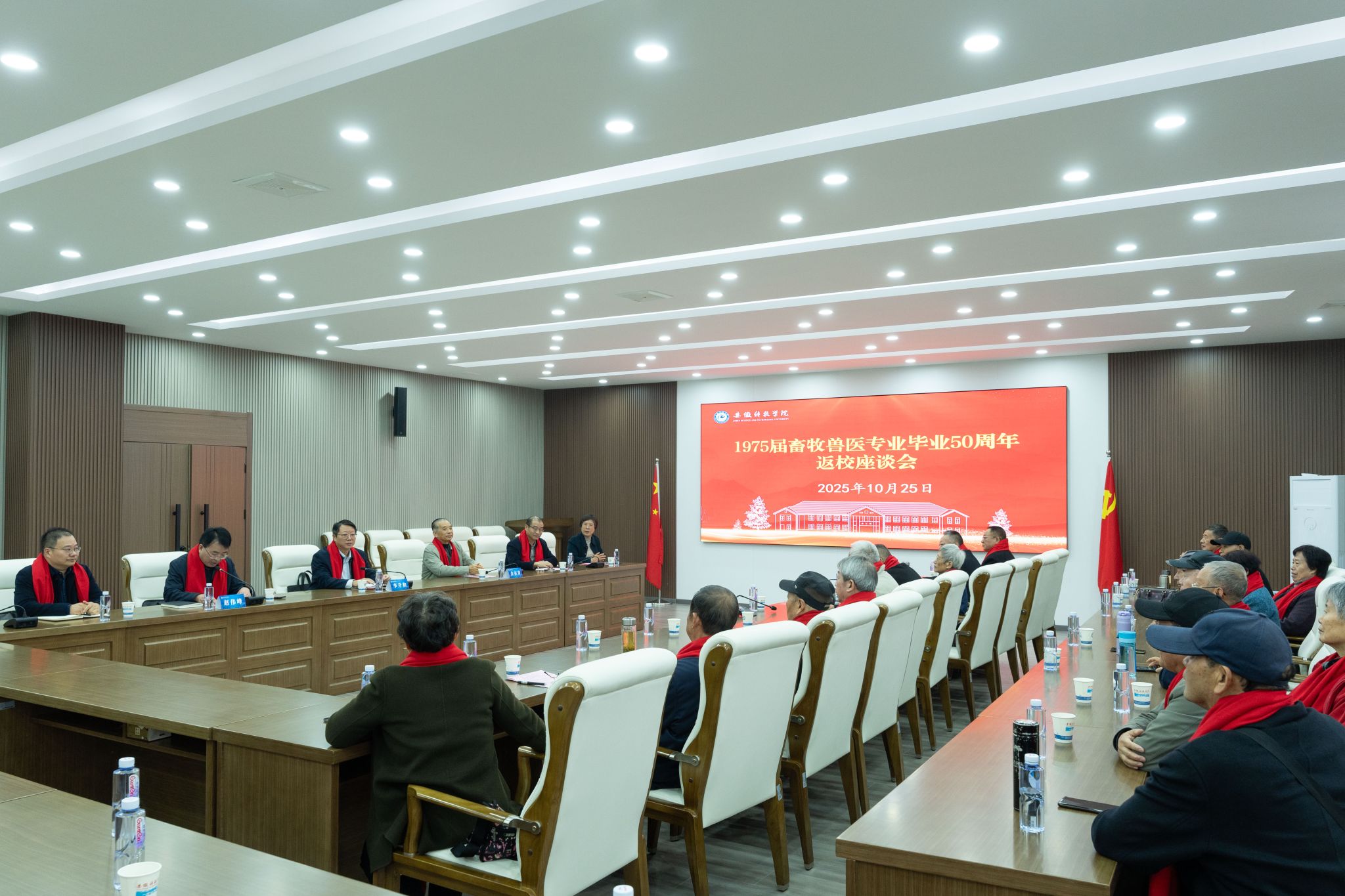 与会校友们就在校学习生活情况以及毕业50年来在专业领域内的发展充分交流,并表达了对母校、对恩师的感激之情,以及对学校日新月异发展的欣慰和对祖国、对学校未来发展的良好祝愿。动物科学学院副院长(主持工作)周金星简要介绍了学院近年来发展取得的成绩以及发展规划。